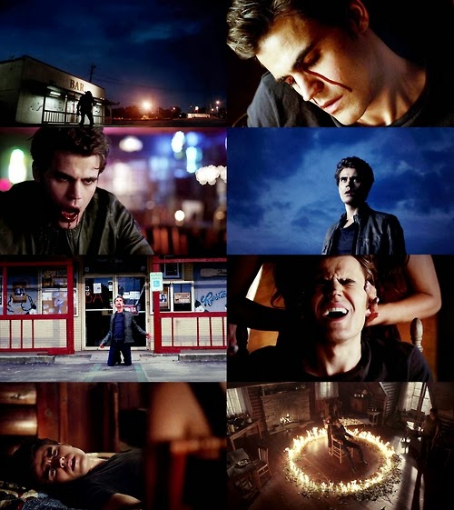 Okay, jetzt schauen wir mal, ob dieser Traum ein schlechtes Omen bzw. eine Warnung war....wir sehen Stefan, wie er in einer Hütte aufwacht und sich erst einmal verstört umschaut. Als er sich hinsetzt bemerkt er ein Mädl, dass anscheinend darauf gewartet hat, dass er aufwacht. "Wer zum Teufel ist dieses Mädchen?!", dass war ziemlich genau mein erster Gedanke. Naja, wer auch immer sie ist, sie scheint zu wissen, dass Stefan ein Vamipr ist, ansonsten wäre ihr nächste Aktion sehr seltsam (sie gibt ihm nämlich einen Blutbeutlel.